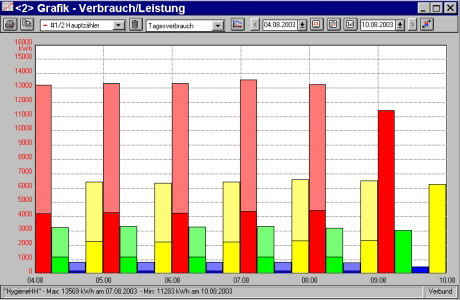 Übersichtliche Balkengrafiken veranschaulichen den Verbrauch im HT- und NT-Bereich. (Hier als Wochengrafik).
