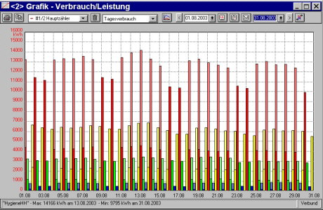 Standardmäßig kann die Darstellung auch als Monatsgrafik erfolgen. Über die komfortable Kalenderfunktion können auch beliebige Zeiträume angezeigt werden.