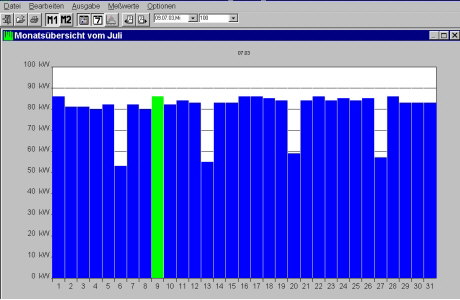 Auch die Tageshöchstwerte eines Monats können als Balkendiagramm angezeigt werden.