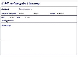 - Komfortable Ausgabe- und Rücknahme von Schlüsseln, wahlweise mit Ausdruck von Ausgabe-, Rücknahme- oder Sammelquittungen