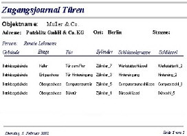 - Umfangreiche Abfrage- und Listenfunktionen, wie z.B. Zugangsjournale oder Zylinderjournale