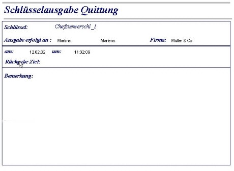 Für jeden Ausgabe- oder Rücknahmevorgang kann eine Einzelquittung gedruckt werden. Selbstverständlich können bei größeren Schlüsselmengen auch Sammelquittungen erstellt werden.