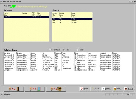 Zwei Abfragemasken geben jederzeit Auskunft auf die Fragen: Wer hat Zutritt zu einem bestimmten Raum? Welche Räume kann eine bestimmte Person betreten?